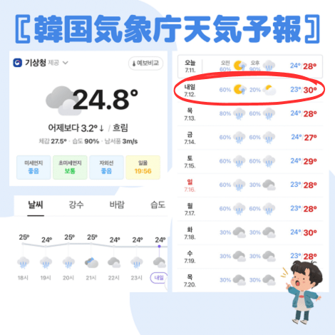 ☆韓国気象庁の2023年7月12日天気予報を確認してみると…↓↓↓