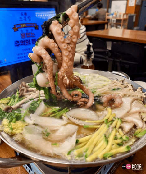 また、ナクチビビンバ(激辛のテナガダコビビンバ)も代表メニューで、寒い時期はヨンポタン(軟泡湯)も美味です^^テナガダコと野菜の辛くない鍋(〆はカルグクス)で、胃にやさしく、体を温めてくれます。